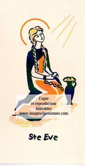 Découvrez la carte « Eve », un hommage à une figure emblématique de la tradition chrétienne. Fabriquée en papier de qualité supérieure, elle présente une illustration éclatante et une biographie du Saint au dos. Avec des dimensions de 15 cm sur 10,5 cm, elle est parfaite pour enrichir votre collection ou célébrer un événement spirituel.