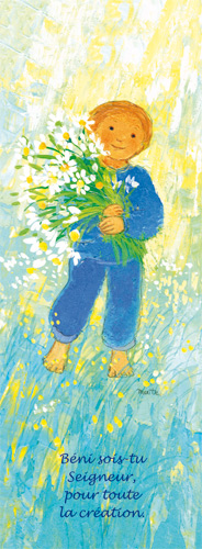 Offrez le signet fête de la Foi, un souvenir unique pour célébrer la Première Communion ou la Profession de Foi. Illustré par Maïte Roche, il invite à la méditation avec la phrase inspirante « Béni sois-tu Seigneur pour toute la création ». Fabriqué sur un papier de qualité, il se glisse facilement dans un livre de prières. Personnalisez-le pour le rendre encore plus spécial et découvrez notre sélection d’images gratuites à partager.